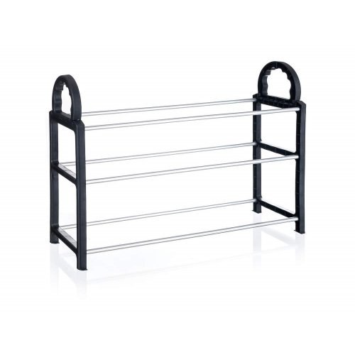 Stojan na topánky je praktický pomocník na ukladanie topánok. Materiál - chrómované rúrky a plastové bočnice v čiernej farbe. Botník je možné veľmi dobre využiť aj k vnútornému vybaveniu skríň či šatní.