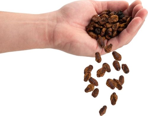 Larvy priadky morušovej sú vhodným doplnkom stravy najmä pre kapry KOI, ktorým dodajú potrebnú energiu, podporia rovnomerný rast a sfarbenie. Ďalej je vhodný pre hmyzožravé vtáky (exotické, voľne žijúce, hydina), drobné cicavce (potkany, krysy, škrečky, ježkov, veveričky), plazy, ale aj pre psy a mačky. Larvy priadky obsahujú vysoký podiel proteínov (53 %), tuk (27 %) a vlákninu (3 %). Má veľmi dobré zloženie aminokyselín a obsahuje nadpriemerné množstvo vitamínu B1, B2 a B5. Má výraznú chuť a vôňu, preto je u zvierat veľmi obľúbený. Analytické zložky: proteíny 53%, tuk 28%, vláknina 3%, popol 4%, vlhkosť 12% Balenie: 500 ml / 150 g