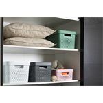 Tento štýlový a praktický box sa vyrába zo 100% recyklovaného plastu . Je teda šetrnejšie k životnému prostrediu. Box má všetky steny perforované malými dierkami . Je teda ideálny pre všetky predmety, ktoré pri skladovaní potrebujú prúdenie vzduchu . Na kratších stenách sa nachádzajú dve madlá . Využijete ich na prenášanie boxu. Navyše doplní vybavenie kuchyne, obývacej izby, spálne aj kúpeľne.