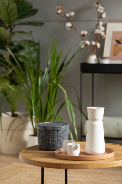 Okrúhly box Curver Jute je vybavený viečkom . Po jeho uzavretí ho opäť ľahko otvoríte. Na veku sa totiž nachádza praktické pútko .