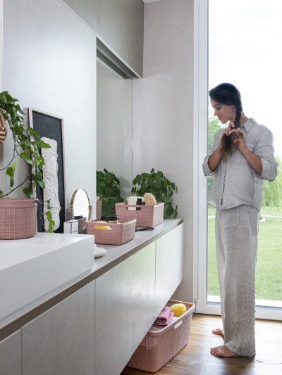 Tento štýlový a praktický box sa vyrába zo 100% recyklovaného plastu . Je teda šetrnejšie k životnému prostrediu. Jeho prevedenie pripomína tkaninu a perfektne zapadne do každého prostredia. Doplní vybavenie kuchyne, obývacej izby, spálne a pokojne aj kúpeľne.
