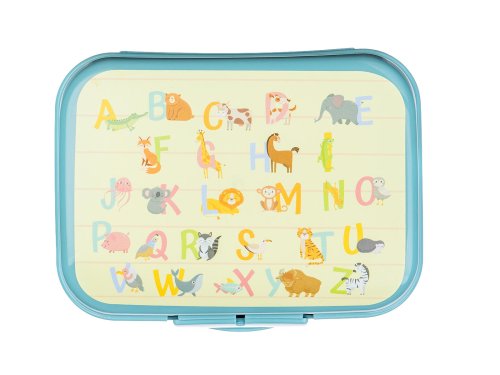 Detský desiatový box s motívom LETTERS je vhodný na desiatu do školy aj na výlety.