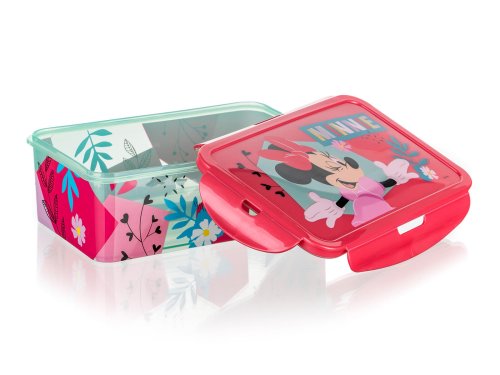 Detský desiatový box s motívom MINNIE sa zatvára pomocou klipsu, ktorý zaistí, že sa vám nič nevysype. Vďaka silikónu zostávajú potraviny dlhšie čerstvé. Box je vhodný do školy ako aj na výlet.