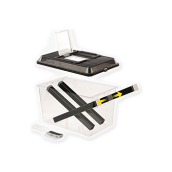 Prenosný priehľadný plastový box s dávkovačom na prechovanie, ošetrovanie a podávanie cvrčkov.
