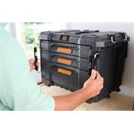 Urobte si poriadok v náradí s praktickým boxom značky Keter. 2 plytké zásuvky a 1 hlbšie využijete na usporiadanie najrôznejších súčiastok. Dohromady unesú až 20 kg a ich celková kapacita je 26,4 litrov . Na prednej strane zásuviek nájdete oranžové rámčeky, pomocou ktorých si ich môžete nadpísať. Vždy tak budete mať prehľad, čo ste si do ktorej uložili. Bezpečnostné zarážky zabránia ich nechcenému vysunutiu.