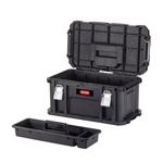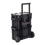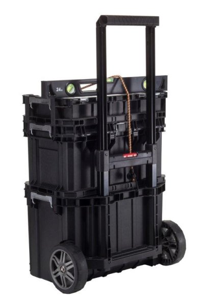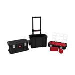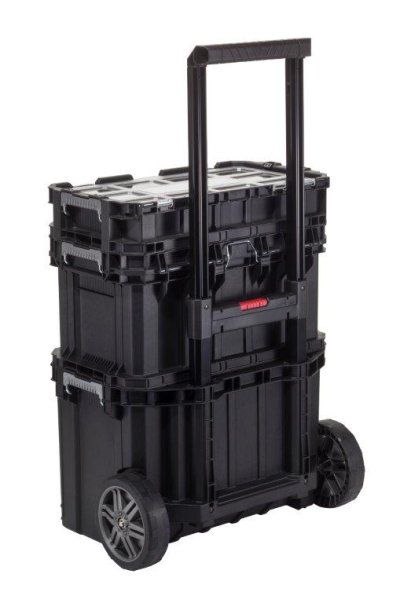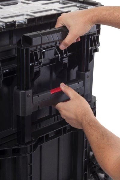 Náradie si bezpečne uložíte do vnútornej časti boxu alebo priamo do vozíka. Okrem toho určite naplníte aj organizér . Ten uchytíte na hornú časť boxu alebo ho použijete samostatne. Organizér je navyše vybavený vyberateľnými priehradkami , do ktorých uskladníte drobné súčiastky. Vďaka priehľadnému veku získate dokonalý prehľad o uložených predmetoch.