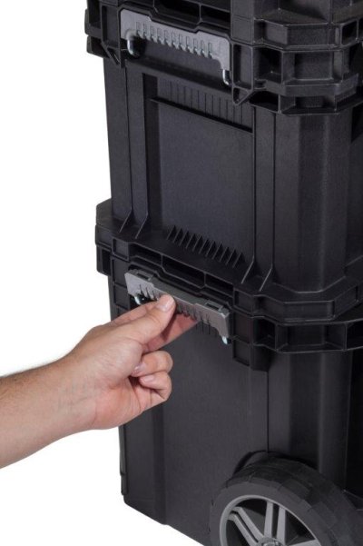 Odolné západky zaistia pevné uzavretie boxu. Jeho obsah sa vám teda nevysype a zostane v bezpečí. Madlo a kolieska vám navyše zjednodušia jeho premiestňovanie a manipuláciu.