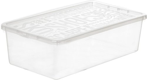 Transparentný plast umožňuje mať prehľad o obsahu a to zo všetkých uhlov. Urobte si poriadok vo svojom botníku alebo si rozdeľte topánky na letnú a zimnú sezónu a uchovávajte si topánky v odolnom plastovom boxe.