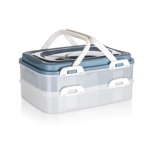 Party box 2 x 7 litra s držadlami je vhodný na prenášanie potravín na piknik, záhradnú oslavu, návštevu alebo výlet. Jednoducho s ním prenesiete chlebíčky, zákusky, ovocie a zeleninu, údeniny alebo pečivo. Súčasťou piknikového boxu je 1 vnútorná mriežka s uchami pre ľahké vyberanie obsahu boxu. Veko boxu je opatrené držadlami pre pohodlné nosenie. Boxy sú spojené pevnými uzávermi - klipsami. Box je vyrobený z transparentného plastu, držadlá a klipsy sú v šedej farbe, veko latte. Rozmery 39 x 30x 17 cm. Nie je vhodné do mikrovlnnej rúry, umývačky. EAN 8591022621011