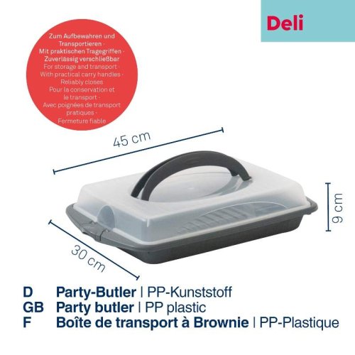 • praktický prenosný box na potraviny s priehľadným vekom - veľké sklopné rukoväte pre pohodlné prenášanie - bezpečné uzavretie veka pomocou postranných klipsov - ideálny na akékoľvek potraviny či suroviny, na záhradu, párty, cestovanie, návštevy, atď. - celkové rozmery: 45 x 30 x 9 cm- rozmery iba vnútornej časti: 35,5 x 26 cm- farba: šedá / transparentná- značka: KELA