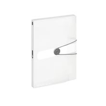 Polopriehľadný trojklopý box na dokumenty a tlačoviny formátu A5 Zatváranie na gumičku Materiál: polypropylén Šírka chrbta 2,5 cm; kapacita 250 listov A5 Rozmery: 25,0 x 17,5 cm (š xv)