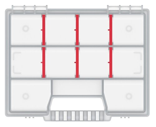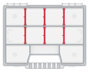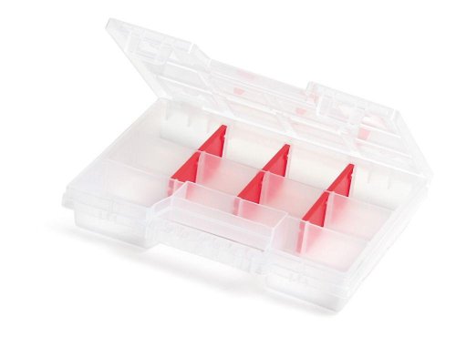 Priehľadný organizér. Rozmery: 195x155x35 mm Počet priehradok: 11 Hmotnosť: 125 g Materiál: Plast Množstvo v balení: 48 ks