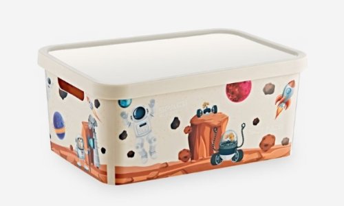 Kvalitný plastový box s vekom a dekorom pre deti na ukladanie hračiek, zošitov a pod. Rozmery 18 x 26 x 11 cm. Dekor podľa skladovej dostupnosti. EAN 8697806192378