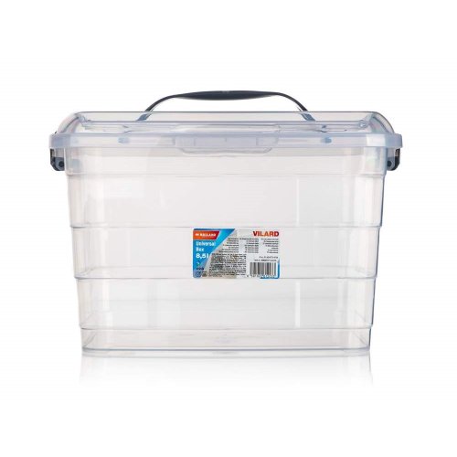 Plastový multifunkčný box VILARD, s objemom 8,5 l, s pohodlným uchom, je vhodný nielen na ukladanie predmetov, ale aj ich prepravu.