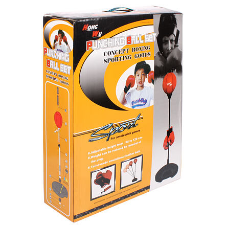 Kvalitný boxovací set Boxing Ball JR je skvelým darčekom alebo hračkou pre hyperaktívne deti, aby ste ich nakumulovanú energiu, získanú posedávaním pred obrazovkami, stimulovali tým správnym smerom. Boxing Ball JR poskytne Vašim deťom hodiny zábavy a posilní ich telesné proporcie aj sebavedomie. Set pozostáva z ručne šitého, nafukovacieho balóna z PVC kože, ktorá je po naplnení vzduchom schopná zniesť aj veľmi tvrdé údery. Boxovacia hruška je skrutkou umiestnená na stojane s robustnou pružinou. Stojan je nastaviteľný od 87 do 112 cm, aby sa prispôsobil proporciám Vášho juniora. Pružina umožňuje zasiahnuť loptu zo všetkých smerov, pričom sa po každom údere vráti späť do vertikálnej polohy. Boxing Ball JR balenie tiež obsahuje pár boxovacích rukavíc a menšiu ručnú pumpičku s ihlou, nemusíte preto strácať čas so zháňaním pumpičky . Boxing Ball JR sa ľahko inštaluje, stačí naplniť základňu vodou alebo pieskom príslušným otvorom, zostaviť tyče k sebe, nafúknuť, nasadiť boxovaciu hrušku a ide sa na to!
