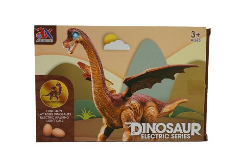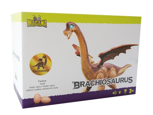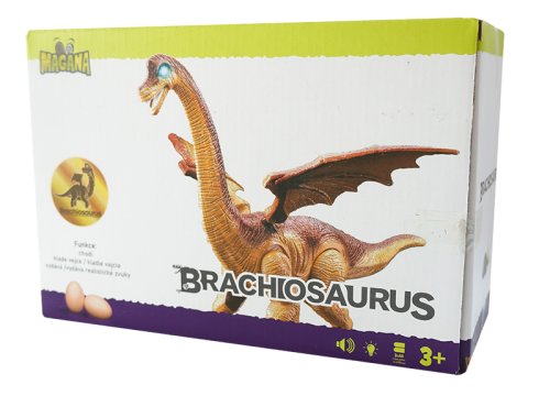 Dinosaurus chodí, vydáva zvuk, svieti a znáša vajcia. Veľkosť 45 cm.