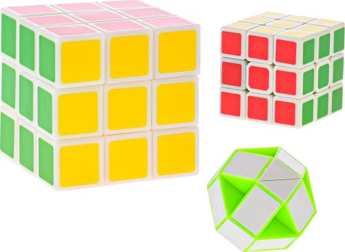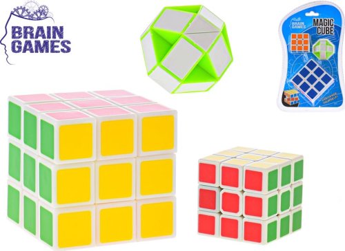 Zábava pre malých aj veľkých, ktorej obľuba trvá už roky... Dve skladacie kocky a Snake - sada troch hlavolamov pre šikovné prsty a múdre hlavičky. Kocky: