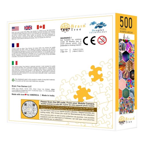 Video je iba ilustračné, zobrazuje príbuzný produkt. Puzzle Brain Tree Vás ihneď zaujmú prvotriednou potlačou a spracovaním povrchu. Matná úprava je zárukou, že aj tie najmenšie multireliéfne detaily obrázku budú za meniacich sa svetelných podmienok dokonale viditeľné. Dieliky sú nielen príjemné na dotyk, ale ponúkajú aj vysokú oteruvzdornosť, zostavovanie si preto budete môcť užívať stále znova a znova. Oproti bežným skladačkám, ktorých dieliky sú vyrezané do vzoru mriežky a majú všetky približne rovnaký tvar, sú dieliky puzzle Brain Tree rezané náhodnejšie. Ponúkajú tak širokú paletu rozmanitých, mnohokrát prekvapivých tvarov, ktoré do skladania vnášajú nevšedný, dobrodružný rozmer a zábavu. Každý dielik je unikátny! V každom balení nájdete plagát so zodpovedajúcim obrázkom vytlačeným v rovnakej kvalite ako samotné puzzle. Súčasťou je aj niekoľko praktických skladacích kartónových priehradok, ktoré môžete využiť pri triedení dielikov. Užitočným doplnkom dodávaným spolu so skladačkami je papierový stojan, do ktorého môžete usadiť veko krabice, aby ste mohli pri stavbe pohodlne nazerať na vzorový obrázok. Hlavné vlastnosti: 500 precízne vyrezaných dielikov náhodných tvarov vysoko kvalitná potlač, odolná povrchová úprava plagát formátu 52×30 cm so zodpovedajúcim obrázkom kartónovej priehradky pre prehľadné triedenie stojan na veko krabice pre väčšie pohodlie pri skladaní