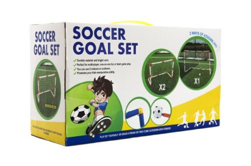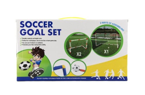 Športová sada na futbal pre všetkých malých futbalistov! Veľa zábavy na záhradu. Postav bránku, natiahni sieť, nafúkaj loptu a zápas môže začať. Je možné zostaviť 1 veľký gól alebo 2 góly menšie, v balení sú 3 siete. Veľkosti gólov: Menšie - 88x60x45cm Väčšie - 180x115x85cm Rozmery balenia 43 x 24 x 16 cm. Vhodné pre deti od 3 rokov.