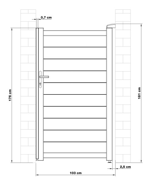 Plotová bránka je kľúčovou súčasťou oplotenia nehnuteľnosti alebo pozemku. 173 cm vysoká hliníková bránka Orlando má vďaka práškovému nástreku ešte dlhšiu životnosť , je odolná , atraktívna a jej šírku môžete aj prispôsobiť existujúcemu oploteniu. Otváranie na kľučku a zámok s FAB vložkou.