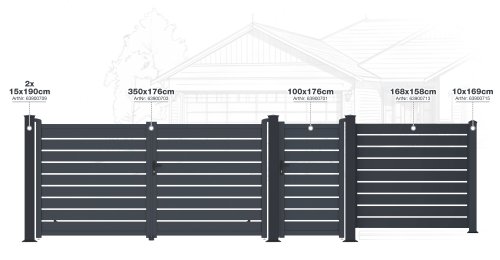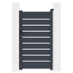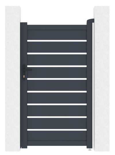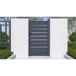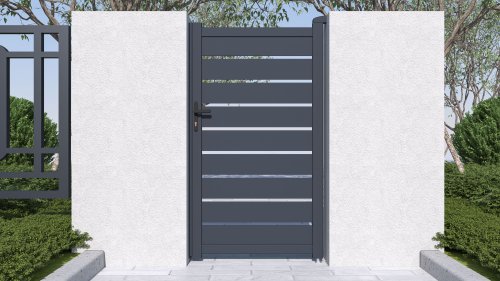 Výplň s horizontálne uloženými lamelami v atraktívnom grafitovom prevedení kombinuje dostatok súkromia s moderným dizajnom, takže bránka s otváraním dovnútra pristane každému typu oplotené stavby.
