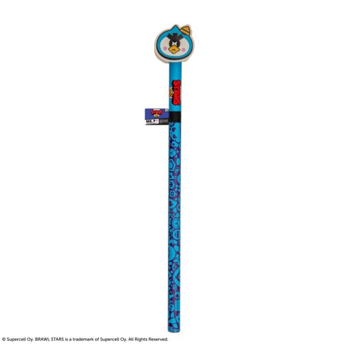 Brawl Stars ceruzka s gumou Mr. P je licencovaný produkt určený predovšetkým fanúšikom populárnej hry Brawl Stars. Tento praktický písací nástroj kombinuje funkčnosť ceruzky s gumou, ktorá je na jej konci v tvare charakteristickej postavičky Mr. P, čo dodáva výrobku hravý a originálny vzhľad. Telo ceruzky je modrej farby a zdobia ho drobné grafické vzory v tmavších odtieňoch modrej, ktoré odkazujú na herný svet Brawl Stars. Na ceruzke je taktiež umiestnené červené logo Brawl Stars, ktoré potvrdzuje oficiálnu licenciu produktu.