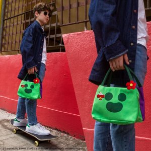 Brawl Stars termo obal na desiatu Spike je praktický a štýlový doplnok určený predovšetkým pre fanúšikov populárnej hry Brawl Stars. Obal je navrhnutý vo výrazných farbách inšpirovaných postavou Spike, pričom prednú stranu zdobí zelená látka s jednoduchou, ale výraznou tvárou v tmavo zelenej farbe. Zadná časť je fialová s farebným kvetinovým motívom, ktorý odkazuje na charakteristický vzhľad tejto postavy. Celý obal je vybavený dvoma pevnými zelenými ušami z tkaniny, čo umožňuje ľahké nosenie v ruke.