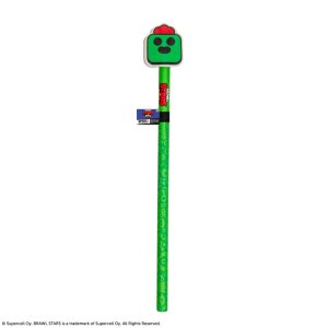 Brawl Stars ceruzka s gumou Spike je štýlový písací nástroj určený predovšetkým pre fanúšikov populárnej hry Brawl Stars. Ceruzka je zhotovená v žiarivo zelenej farbe, ktorá odkazuje na postavu Spike, jedného z obľúbených hrdinov hry. Povrch ceruzky je zdobený drobnými grafickými motívmi súvisiacimi s herným svetom Brawl Stars, čo jej dodáva hravý a farebný vzhľad. Na tele ceruzky je navyše vytlačené červené logo Brawl Stars, ktoré podčiarkuje jej oficiálny licencovaný charakter.