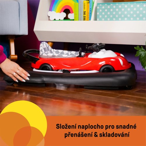 Toto detské chodítko Racer ponúka 3 režimy rastu s dieťatkom: tradičné auto chodítko, chodítko a prenosnú hračku. Spolu s volantom, radiacou pákou a kľúčom od auta na „zapnutie“ zábavy môžete posadiť dieťatko na sedadlo vodiča a rozvíjať jeho jemné motorické schopnosti. Zamilujú si skúmanie detailov auta a riadenia ako mama a otec... a volant vydáva zábavné cvakavé zvuky pre multizmyslovú zábavu. Začnite pretekať s dieťatkom vo veku od 6 mesiacov do 2 rokov alebo viac – chodítko rastie s dieťaťom od skorého objavovania až po prvé krôčiky až po expertnú úroveň „vodiča“. A s priloženými nálepkami so závodnou tematikou môžete prispôsobiť novú jazdu bábätka. Váš drobček nebude schopný potlačiť jeho chichot, keď bude jazdiť po chodbách s mamou a otcom, ktorí ich povzbudzujú. Zamilujete si 3 rôzne nastaviteľné polohy výšky, bezpečnostné prvky a pohodlné skladovanie. Jednoducho položte naplocho, keď sa nepoužíva. Utrite dočista vlhkou handričkou a jemným mydlom, sedátko je možné prať v práčke.