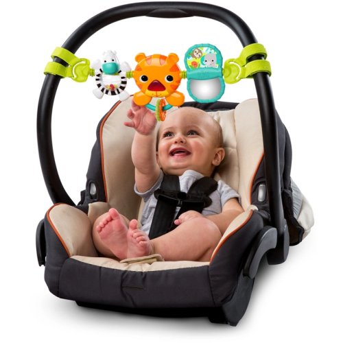 Hračka do kočíka je vhodná pre deti od narodenia. Nos tigra sa rozsvieti a zahrá 4 melódie, keď ho dieťa stlačí, zebra sa otáča dookola a vo vnútri nej hrkajú farebné korálky av otočnom zrkadle sa môže dieťa samo videť. Hračku možno ľahko uchytiť na väčšinu kočíkov alebo autosedačiek.