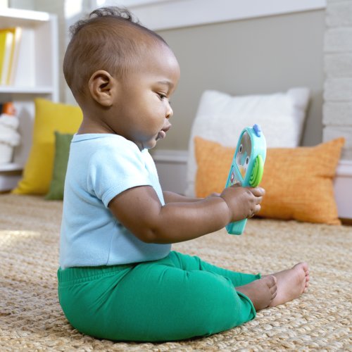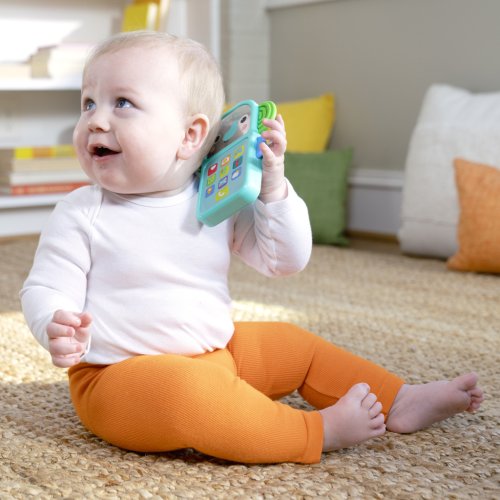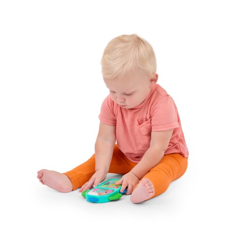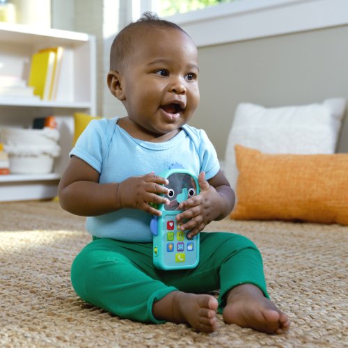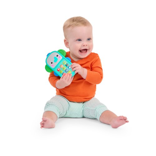 Zábava na telefóne s hudobným sloníkom Bright Starts Elephone™! Tento veselý sloníkový telefón je ako stvorený pre malé ručičky a prináša množstvo zábavy a interakcie. Interaktívna klávesnica je plná známych ikoniek aplikácií a zvukov, vďaka čomu sa dieťatko bude cítiť ako mama alebo otec. Každým stlačením tlačidla sa aktivujú svetielka a melódie. Rozkošná sloníkova tvárička má svietiace líčka a zrkadlo pre objavovanie seba samého. Jeho ušká sú textúrované pre dodatočnú senzorickú hru a hmatovú stimuláciu! Hračka obsahuje viac ako 20 zvukov a melódií a funguje na 2 AAA batérie (nie sú súčasťou balenia). Vďaka ľahkému a prenosnému designu je ideálny pre zábavu na cestách. Jednoducho sa zmestí do väčšiny prebaľovacích tašiek a skvele doplní zbierku hračiek na kočík. Vhodné pre deti od 6 mesiacov. Výborný darček na krstiny, narodeniny či Vianoce.