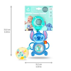 Doprajte svojmu bábätku nekonečnú zábavu s rozkošným Stitchom! Interaktívna hračka, ktorá podporuje vývoj zmyslov a jemnej motoriky už od najútlejšieho veku. Otočte valček v brušku a sledujte, ako sa farebné korálky víria vo vnútri – táto kombinácia pohybu, farieb a zvuku podnecuje zrak aj sluch. Posúvajte korálky po Stitchovej rukoväti pomocou uchopiteľnej rukoväte a rozvíjajte pri tom jemnú motoriku. Mäkký plyšový kruh s ručne robenou bábikou vydáva šuštiace zvuky, ktoré stimulujú hmat a sluch. Vďaka C-krúžku sa hračka jednoducho pripevní ku kočíku alebo autosedačke – ideálna na cesty či prechádzky. Je ľahká, skladná a vhodná pre chlapcov aj dievčatá od narodenia.
