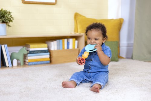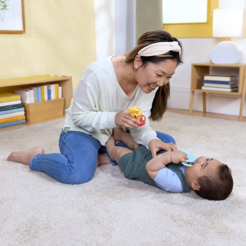 Materiál: - 99% plast a 1% kov. Vekové rozpätie: 0 – 36 mesiacov Rozmery produktu: 10 cm x 4,5 cm x 5,5 cm Dôležité: Pred odovzdaním výrobku dieťaťu odstráňte všetok obal a upevňovacie prvky. Tento obal a návod na použitie si uschovajte pre budúce použitie – obsahujú dôležité informácie. V rámci neustáleho procesu zlepšovania a inovácie naše výrobky priebežne aktualizujeme.