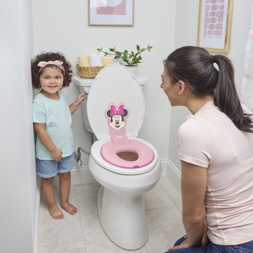 Zábavné a hygienické učenie na nočník s obľúbenou Minnie! Uľahčite svojmu dieťatku prechod z plienok na veľký záchod s pomocou roztomilej a praktickej tréningovej dosky Flip&Sit s motívom Minnie Mouse od Bright Starts. Tento šikovný pomocník sa jednoducho pripevní na bežné WC – bez náradia, behom pár sekúnd ho môžete odlepiť, prilepiť a hotovo! Flip-up systém umožní, že redukciu jednoducho vyklopíte nahor, keď ju práve nepotrebujete. Či už ste v procese učenia na nočník alebo sa naň len pripravujete, redukcia Flip&Sit Minnie Mouse prinesie kúpeľni štýl, čistotu a hlavne motiváciu pre malých učiacich sa hrdinov. Ideálne riešenie pre menšie kúpeľne, bez zbytočného nočníka na zemi. Žiadne vylievanie obsahu ako pri klasickom nočníku – stačí spláchnuť a ide sa ďalej!