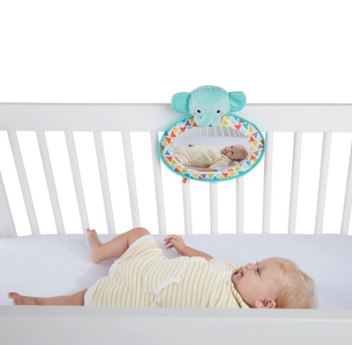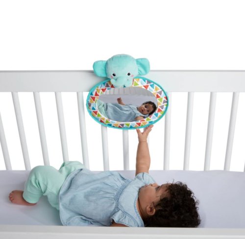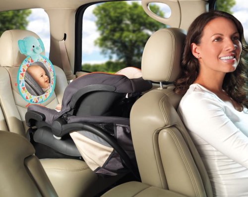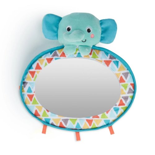 Praktické zrkadlo do auta. Počas jazdy farebný slon s vtáčikom zabaví vaše dieťa, zároveň vďaka veľkému vypuklému zrkadlu môžete mať dieťa pod kontrolou. Zrkadlo je možné pripevniť aj na postieľku alebo kamkoľvek sa vám to bude hodiť. Veselé farby na zrkadle pritiahnu pozornosť vášho dieťaťa. Na praktické tri pútka v spodnej časti je možné pripevniť ďalšie obľúbené hračky.