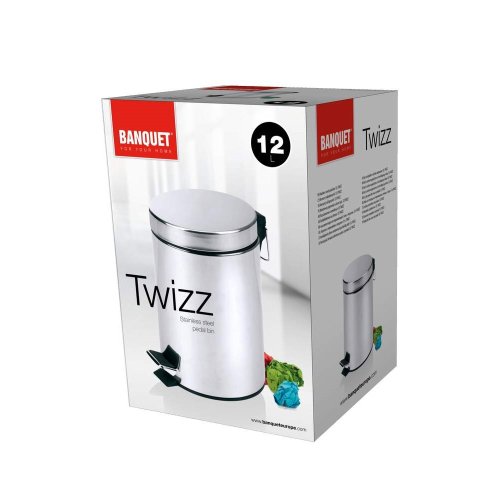 Odpadkový kôš TWIZZ 12 l, nerezové prevedenie, vonkajší povrch - lesk, vnútorná vyberateľná nádoba na odpad je vyrobená z plastu. Kôš má nášľapný systém na otváranie veka na hygienickú manipuláciu.