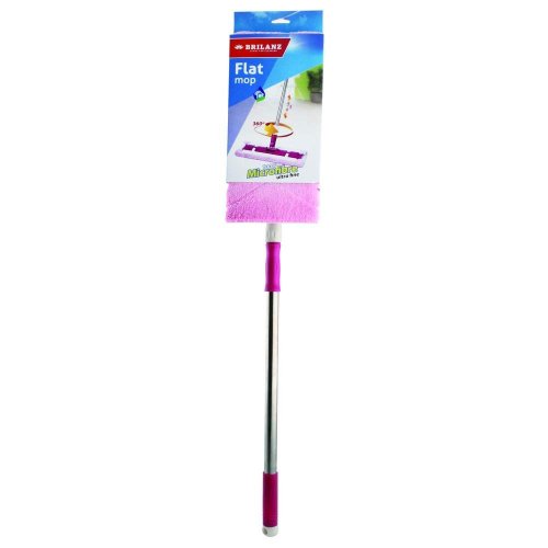 Plochý mop s teleskopickou nerezovou tyčou BRILANZ. Ultra jemné mikrovlákno. Rozmer: pracovná plocha 37 x 15 cm, dĺžka tyče 86 - 126 cm.