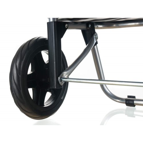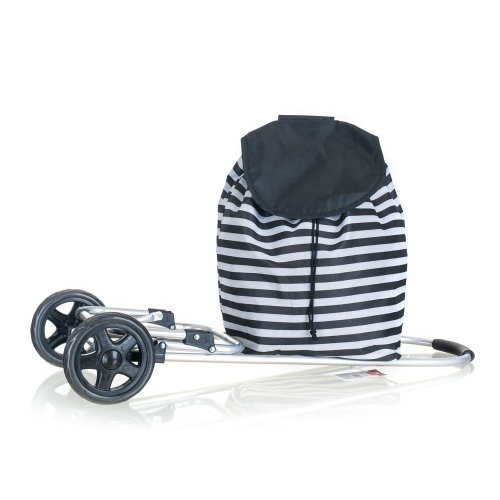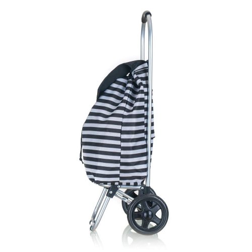 Nákupná taška na kolieskach je pomocníkom pri ťažších nákupoch najmä pre starších občanov a ženy. Objem tašky je 30 la maximálna nosnosť 25 kg. Textilná taška je ľahko odnímateľná z kovovej konštrukcie a je ľahko umývateľná. Taška na kolieskach má ergonomickú rukoväť a konštrukcia tašky je spevnená kovovou odkladacou plochou, ktorá stabilizuje celý výrobok. Plastové kolieska umožňujú jednoduchý pohyb po akomkoľvek povrchu.
