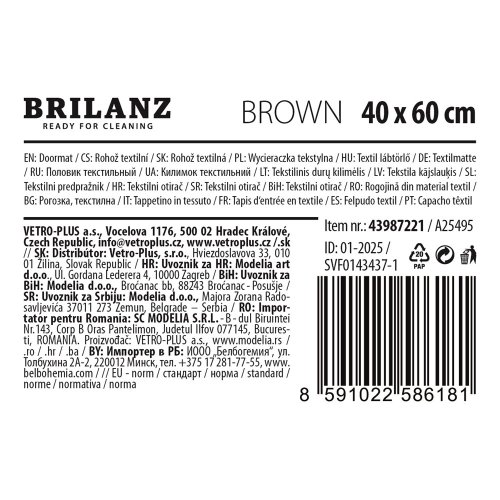 Rohož textilná 40 x 60 cm slúži na očistenie obuvi pred vstupom do vnútorných priestorov. Spodná gumová časť zabraňuje preklzu rohožky, vrchná textilná časť umožňuje ľahké čistenie.