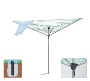 Vonkajší sušiak 40 m, 3 ramenný má veľmi pevnú oceľovú konštrukciu. Šnúra je v dvoch farebných prevedeniach - biela a šedá. Súčasťou výrobku je zemná objímka. Sušiak má kapacitu cca 3 práčok.
