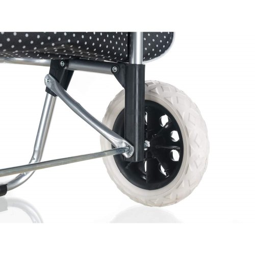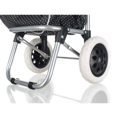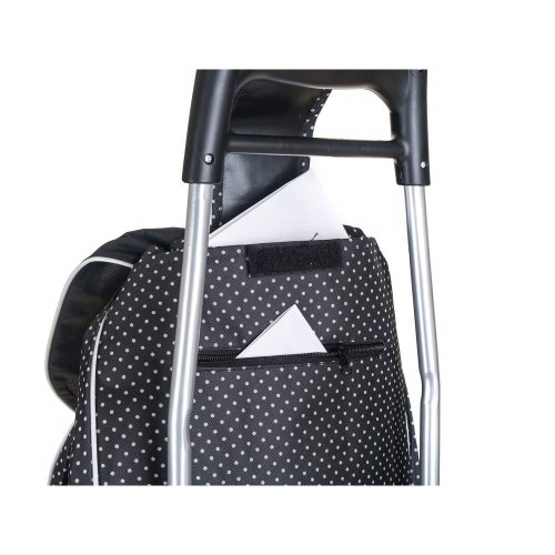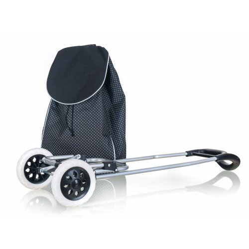 Nákupná taška na kolieskach je pomocníkom pri ťažších nákupoch najmä pre starších občanov a ženy. Objem tašky je 30 la maximálna nosnosť 30 kg. Textilná taška je ľahko odnímateľná z kovovej konštrukcie a je ľahko umývateľná. Taška na kolieskach má ergonomickú rukoväť a konštrukcia tašky je spevnená kovovou odkladacou plochou, ktorá stabilizuje celý výrobok. Plastové kolieska umožňujú jednoduchý pohyb po akomkoľvek povrchu.