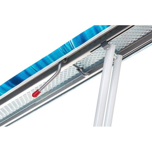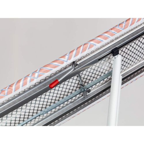 Žehliaca doska BASIC, rozmery: 110 x 30 cm, kovová doska Mash, podložka 5 mm, kovová odkladacia plocha na žehličku, biela povrchová úprava konštrukcie, nastaviteľná výška max.90 cm, váha 3,5 kg. Priemer nôh 20 mm, hrúbka materiálu 0,7 mm.
