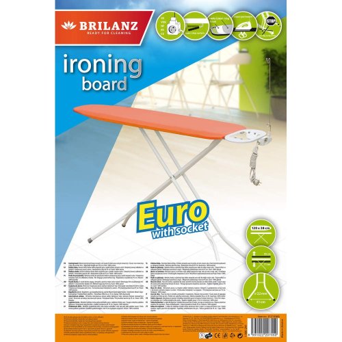 Žehliaca doska EURO o rozmere 120 x 38 cm so zásuvkou a kovovou doskou Mash, ktorá dobre prepúšťa paru a bielizeň pritom zostane suchá. Podložka 8 mm, elektrická zásuvka, nastaviteľná výška max.94 cm, váha 4,9 kg, mix poťahov - rôzne farby a vzory. Priemer nôh 22 mm, hrúbka materiálu 0,7 mm