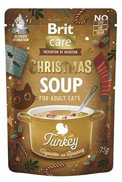 Vianočný rad Brit Care Christmas Soup pre mačky bol vytvorený ako limitovaná edícia, ktorá spája kvalitné mäso, zeleninu a bylinky s vysokým obsahom vlhkosti na podporu hydratácie. Receptúry sú obohatené o taurín, L-metionín, prebiotiká a probiotiká, ktoré prispievajú k dobrému tráveniu, imunite a zdraviu močových ciest. Vďaka šetrnému zloženiu bez obilnín, sóje, GMO a pridaného cukru sú polievky vhodné aj pre citlivé a vyberavé mačky a predstavujú chutný spôsob, ako spestriť ich každodenný jedálniček.