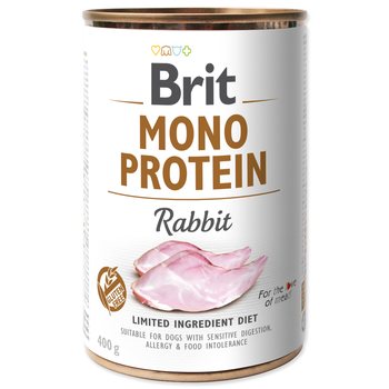 Monoproteín – konzerva obsahuje iba mäso a vnútornosti z jedného živočíšneho zdroja. Nájdenie toho, čo škodí psom s citlivým zažívaním, intoleranciou alebo s alergiou, môže byť beh na dlhú trať, v ktorom nám môžu pomôcť konzervy s jedným druhom proteínu. Vylučovacou metódou je možné ľahko vyradiť všetko škodlivé. Pretože niektorí psi s citlivým zažívaním zle trávia väčšie kúsky mäsa či vnútorností, majú konzervy Brit Monoproteín konzistenciu jemného paté – lepšie sa trávia a ľahko ich prijímajú aj psí seniori, ktorí majú problém so zubami. Hlavné prednosti: