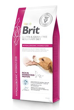 Brit Gluten & Grain-Free Veterinary Diet Hypoallergenic Hydrolyzed je kompletné diétne krmivo bez obilnín určené pre psov trpiacich potravinovými alergiami, intoleranciou a kožnými problémami, ako sú dermatózy či nadmerné vypadávanie srsti. Granule obsahujú 100% hydrolyzovaný živočíšny proteín s nízkou molekulovou hmotnosťou (< 5 000 Da), ktorý minimalizuje riziko alergických reakcií a zaisťuje vynikajúcu stráviteľnosť. Receptúra je bezlepková a neobsahuje kurací tuk - najčastejšie zdroje potravinových alergií u psov. Vďaka obsahu omega-3 mastných kyselín (EPA a DHA), komplexu vitamínov B, zinku a postbiotík prispieva k regenerácii pokožky, posilneniu kožnej bariéry a podpore prirodzenej imunity. Krmivo bolo vyvinuté v spolupráci s veterinármi a je vhodné na dlhodobé podávanie pri zažívacích a kožných problémoch. Krmivo je určené pre psov: