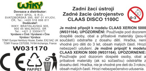 Britains CLAAS DISCO 1100C zadné žacie ústrojenstvo. Mierka 1:32. Veľkosť 31,5 cm. Kompatibilný s traktorom CLAAS XERION 5000 (W031164/43246) a inými traktormi v mierke 1:32.
