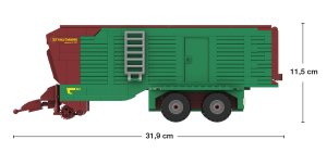 • Dávkovací systém: dvojité alebo trojité dávkovacie valce pre rovnomerné vykladanie na kŕmnu plochu, niektoré modely s hydraulickým vyhadzovačom alebo dávkovacou stenou