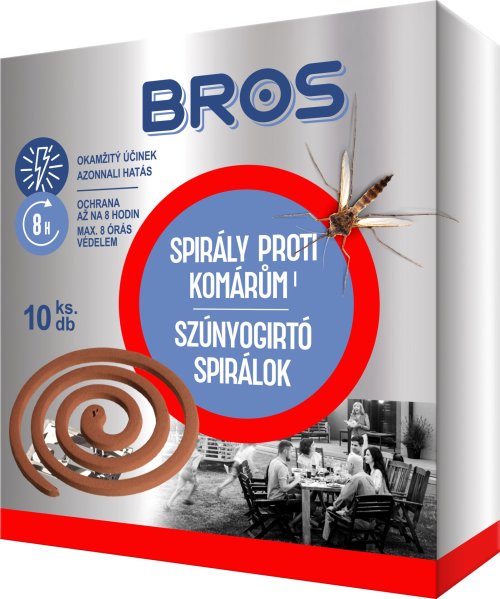 Bros špirály sú určené na ničenie komárov vo vonkajších priestoroch, napr. na záhrade, terase alebo balkóne. Výrobok je určený iba na vonkajšie použitie. Dym z tlejúcej špirály pôsobí insekticídne a odpudzuje hmyz.