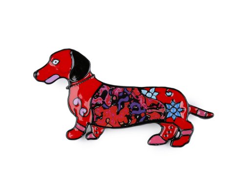 Brošňa psíka jazvečíka s farebným smaltom je doplnkom, ktorý okamžite upúta pozornosť.